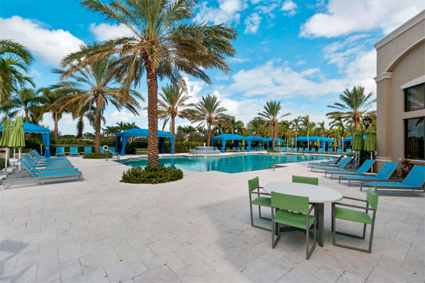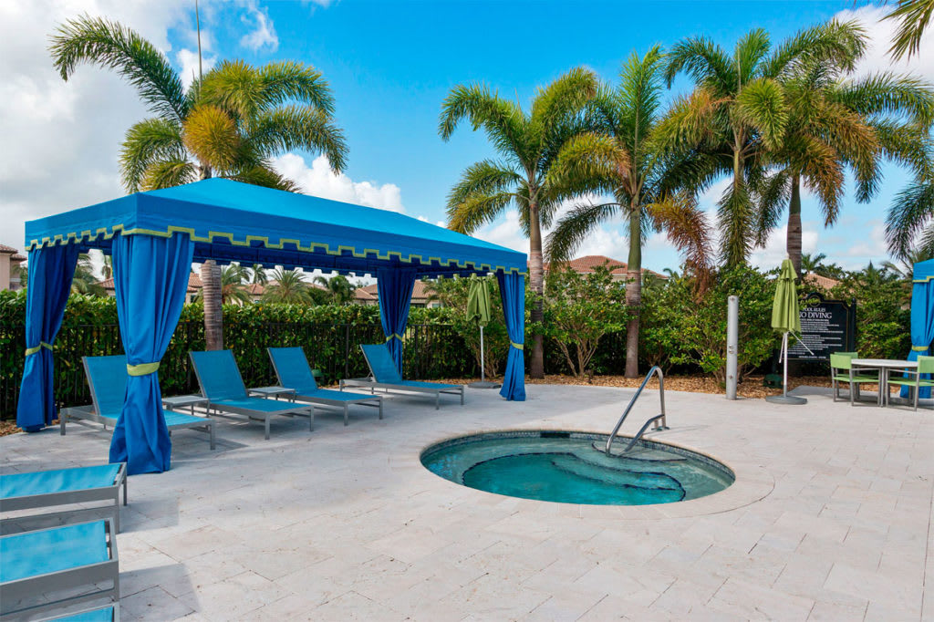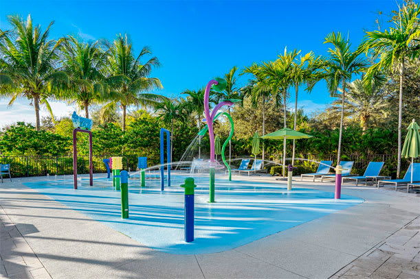 The resort-style swimming pool and spa is surrounded by a spacious pool deck and shade cabanas. Children can splash and play in an aqua lot and wading pool.